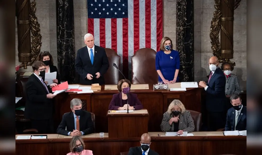 El vicepresidente volvió al Congreso para presidir la sesión de ratificación de los resultados de las elecciones, horas después de haber desafiado a Trump, que le pedía arrogarse un poder que no le otorga la Constitución e impedir que se certificara lo votado por millones de estadounidenses en estados clave.