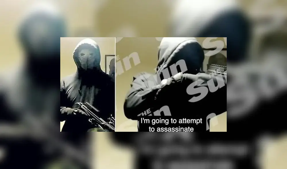 En el video, se ve al individuo con una ballesta y vestido con un suéter negro con capucha. Detrás de una máscara blanca se le oye decir: “Siento lo que he hecho y lo que voy a hacer. Intentaré asesinar a la reina Isabel”.