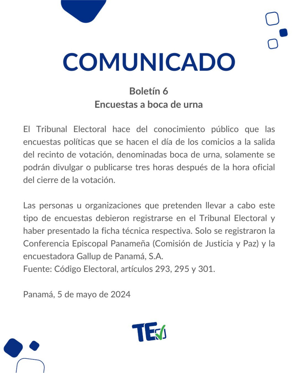 El Tribunal Electoral envió un comunicado, donde afirma que los resultados a boca de urna podrán ser divulgados 3 horas después del cierre.