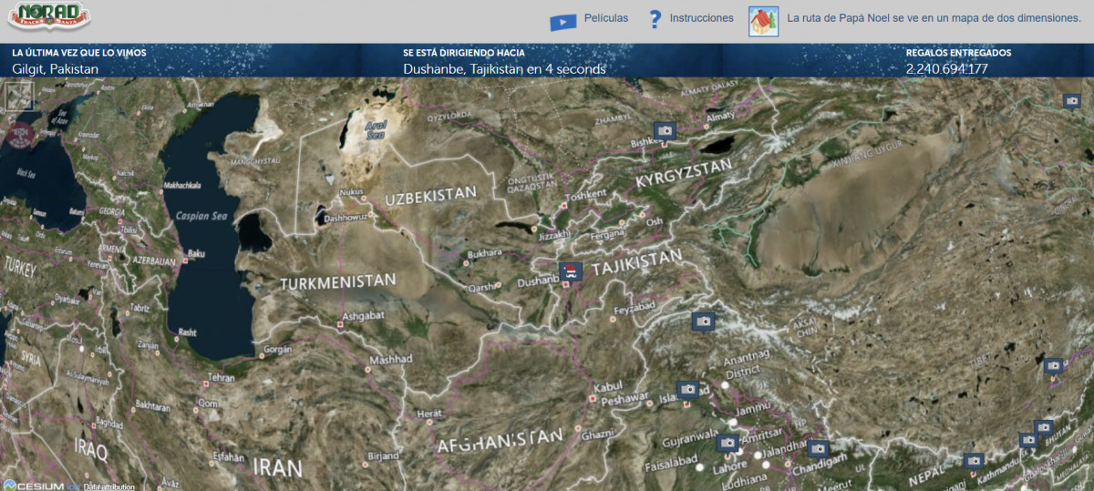 Papa Noel se encuentra en Uzbekistan, en su ruta cerca de Europa.
