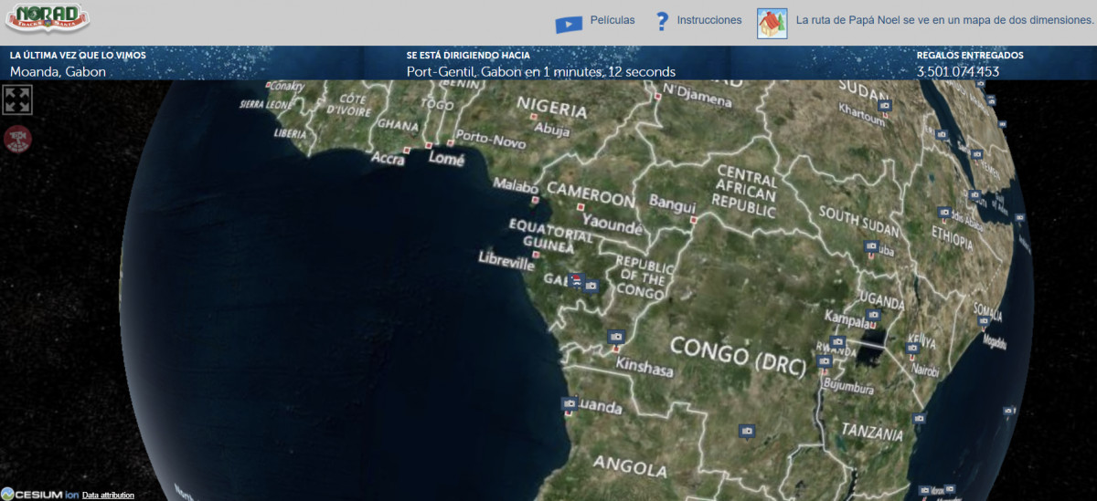 Según la página oficial de Norad, Santa Claus se dirige hacia África Central en vísperas de Navidad 2024.