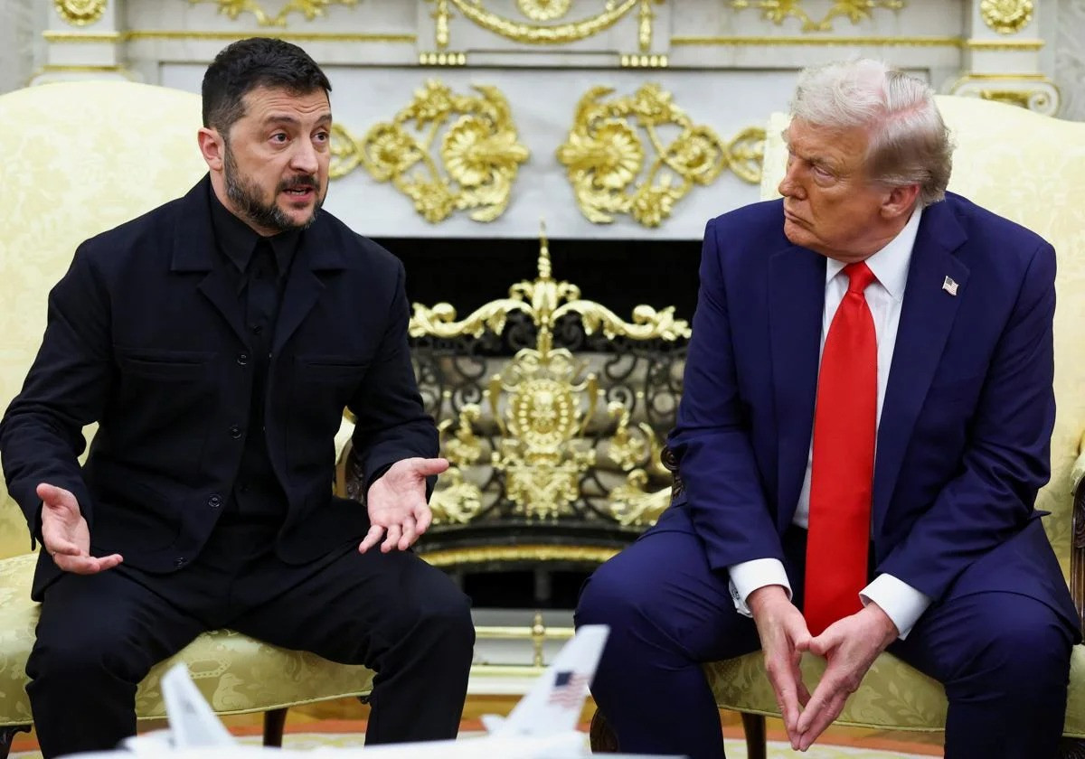 Durante un encuentro en la Oficina Oval centrado en la guerra y la paz, el presidente ucraniano Volodymyr Zelenskyy vistió un traje negro.