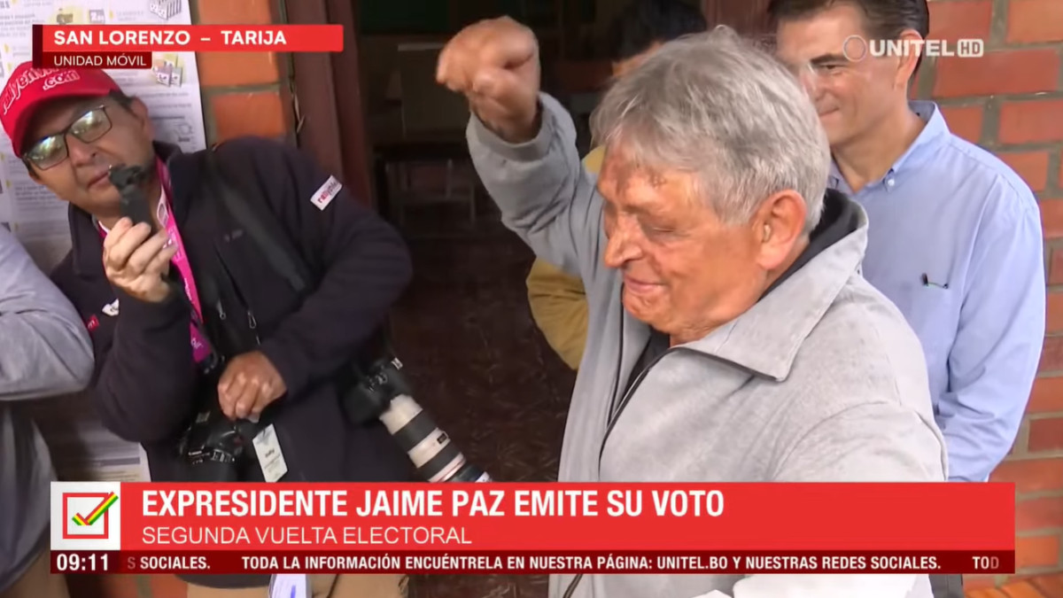 El expresidente Jaime Paz Zamora acudió este domingo a emitir su voto al municipio de San Lorenzo, Tarija, acompañado de su hijo, el candidato presidencial Rodrigo Paz Pereira, en el marco de la segunda vuelta de las elecciones generales en Bolivia.