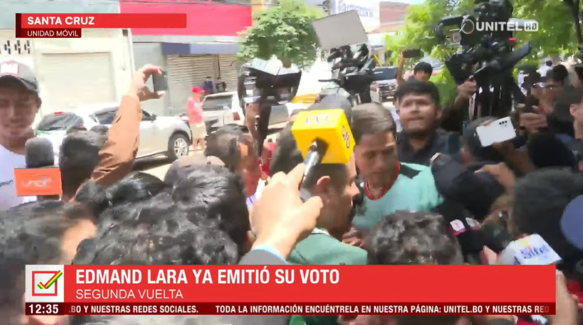 El candidato a la Vicepresidencia por el Partido Demócrata Cristiano (PDC), Edmand Lara, emitió su voto este domingo al mediodía en el módulo educativo Humberto Vásquez Machicado, en Santa Cruz de la Sierra. Su arribo al recinto se produjo con poco más de una hora de retraso respecto a lo previsto. A su llegada, agradeció el respaldo recibido durante la campaña y expresó optimismo sobre los resultados: “A toda la gente que nos ha apoyado, que Dios los bendiga, no pierdan la fe, hoy vamos a ganar”, declaró.