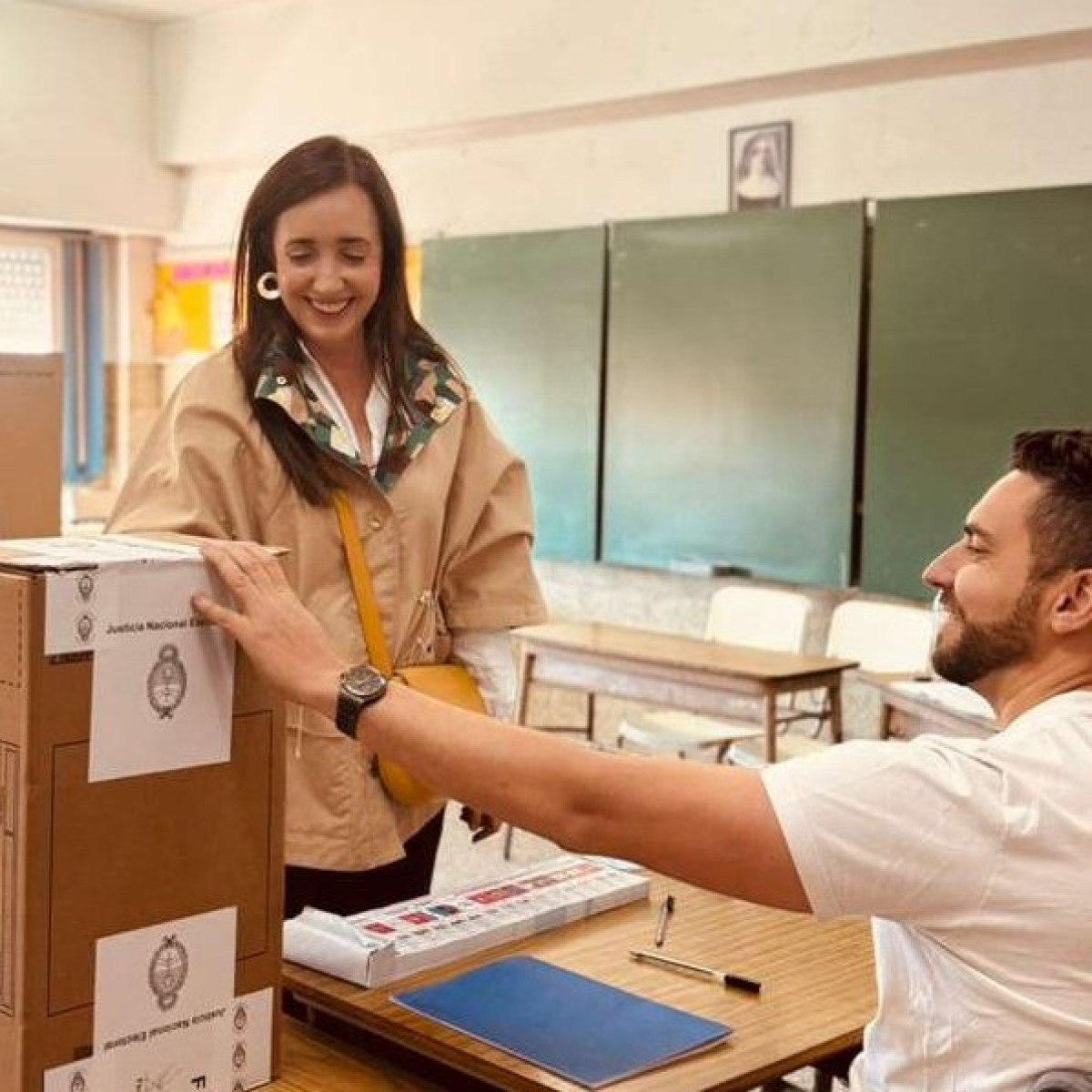 La secretaria General de la Presidencia y hermana del presidente Javier Milei, Karina Milei, emitió su voto este domingo pasadas las 12:30 en Vicente López, en medio de un operativo de seguridad judicial. Durante la jornada, entregó algunos presentes a las autoridades de mesa y saludó a las mascotas de la brigada de explosivos.