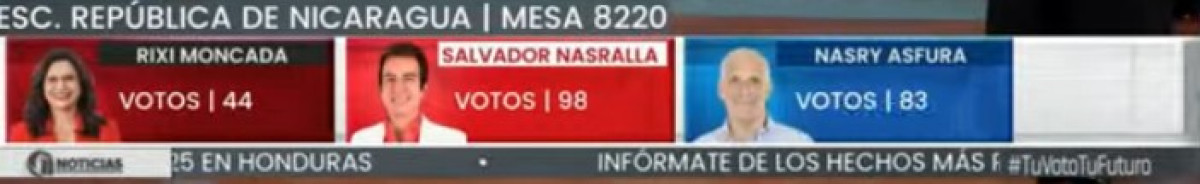 En una mesa de Nicaragua, Nasralla va ganando con una corta diferencia frente a los demás.
