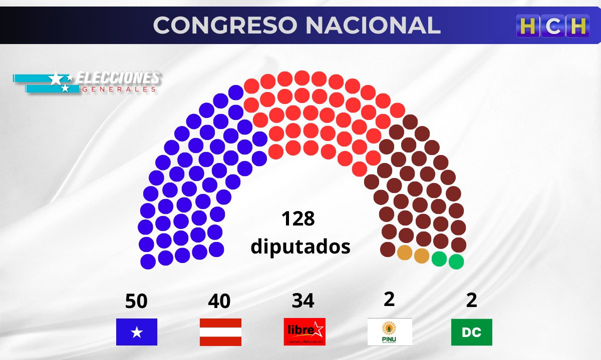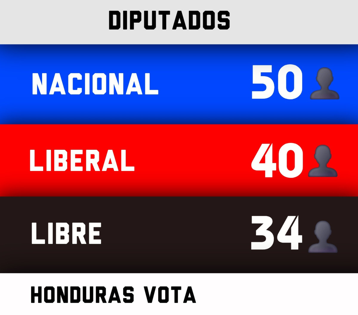 El nuevo congreso de Honduras estaría quedando así: el Bipartidismo Nacional-Liberal ganó el 70% de los diputados. Esto significa un golpe para el oficialismo que quedó con 34 escaños.