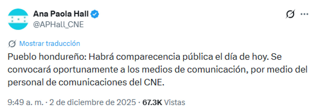 La candidata a la presidencia del Partido Libertad y Refundación (Libre) anunció que a las 8:30 p. m. en Honduras llevará a cabo una declaración sobre los resultados electorales de 2025. Durante la jornada del lunes 1 de noviembre, la abogada mantuvo un perfil bajo.