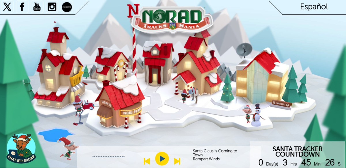 Música navideña de fondo acompaña en la espera por el recorrido de Papá Noel por la Navidad 2025. Foto: NORAD Tracks Santa