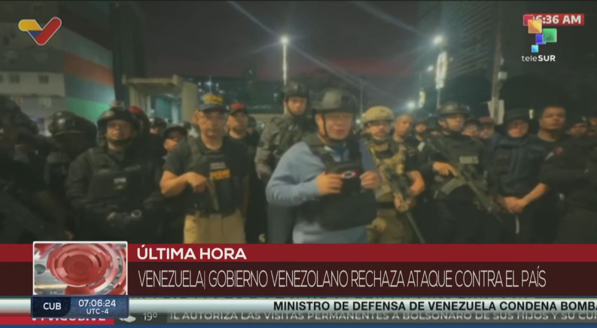 El ministro de Interior de Venezuela, Diosdado Cabello, ofreció un breve discurso en una transmisión de Telesur después de los ataques ocurridos en la madrugada, siendo esta su tercera aparición pública tras el operativo realizado por las fuerzas militares de Estados Unidos en territorio venezolano.