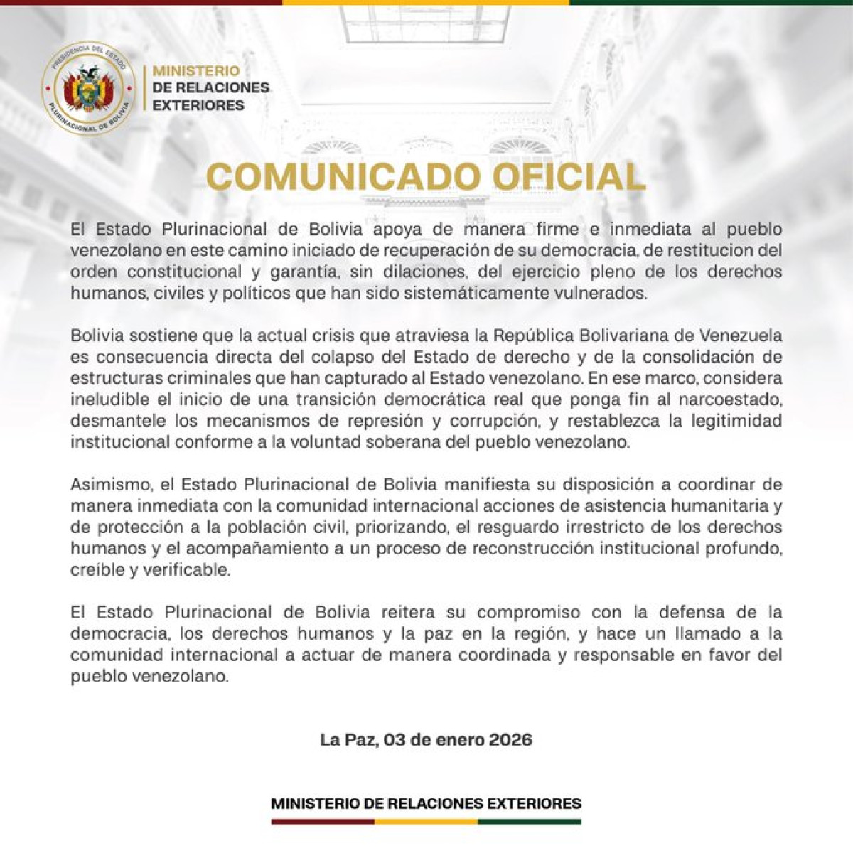 La oposición política en Venezuela, tras la captura de Nicolás Maduro, mantiene comunicaciones con varios gobiernos internacionales, incluidos países de América Latina como Argentina, Ecuador, Panamá y Paraguay, así como Francia. Estos países expresaron su apoyo al restablecimiento de lo que consideran “la voluntad del pueblo” en Venezuela.