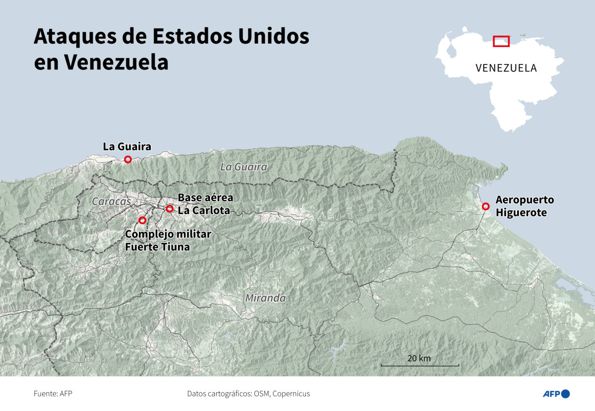 AFP realizó un gráfico que expone cuáles fueron las áreas afectadas por los ataques de Estados Unidos en Venezuela.