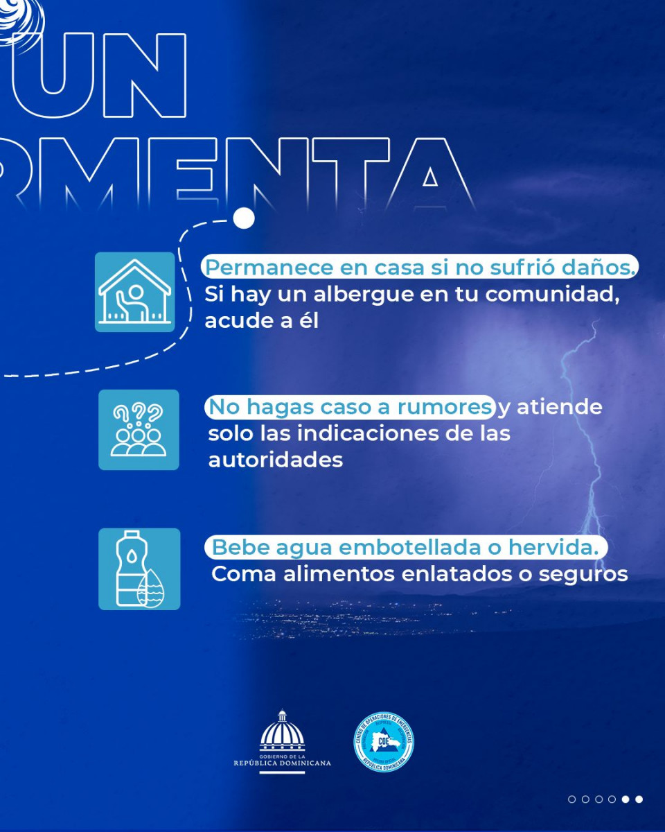 Con respecto a República Dominicana, a primera hora del martes, la tormenta estaba a unos 415 kilómetros al sur de Santo Domingo y tenía vientos máximos sostenidos de 85 kilómetros por hora. Se prevé que se dirija hacia el norte.