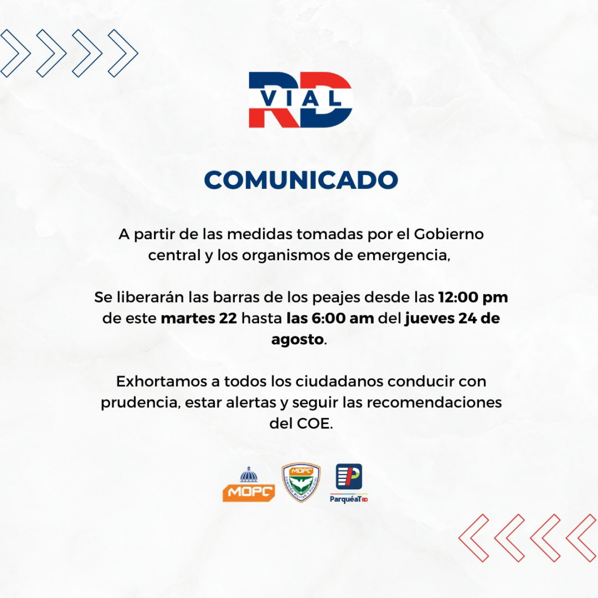 Siguiendo la comunicación oficial, tanto los sectores públicos como privados cesarán sus actividades desde las 12 p. m. del martes 22 hasta las 8 a. m. del jueves 24. Esta medida ha sido adoptada en previsión del posible impacto de la tormenta tropical Franklin.