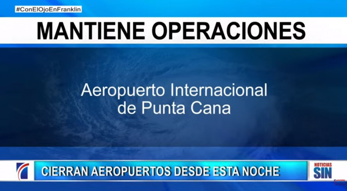 Las autoridades de la República Dominicana dispusieron este martes el cierre de varios aeropuertos del país, debido al avance de la tormenta tropical Franklin que, según las previsiones, tendrá su núcleo ubicado sobre el país en la próxima madrugada y estará descargando abundantes lluvias.