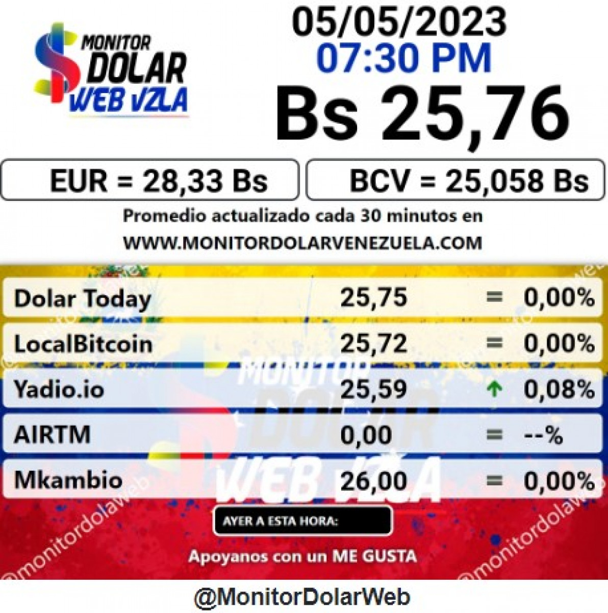 El portal web oficial de Monitor Dolar actualizó el precio de la divisa norteamericana en 25,76 bolívares para hoy, 5 de mayo.
