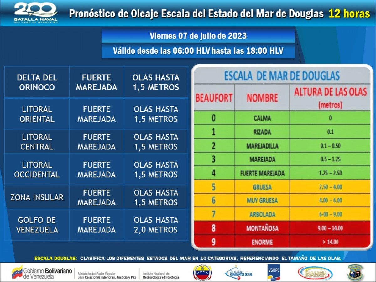 Inameh publicó en su cuenta de Twitter el pronóstico del oleaje para el viernes 7 de julio.