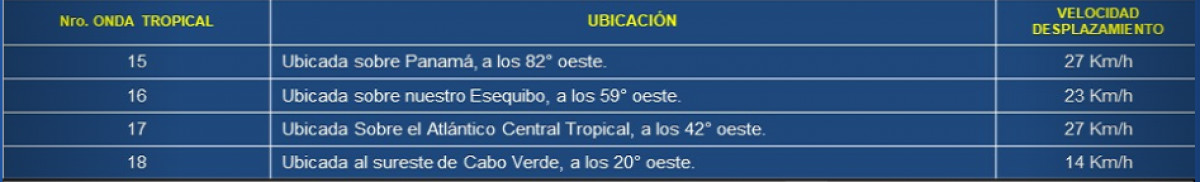 Según el Inameh, en total son 4 las ondas tropicales que están afectando el clima del país: 15, 16, 17 y 18.