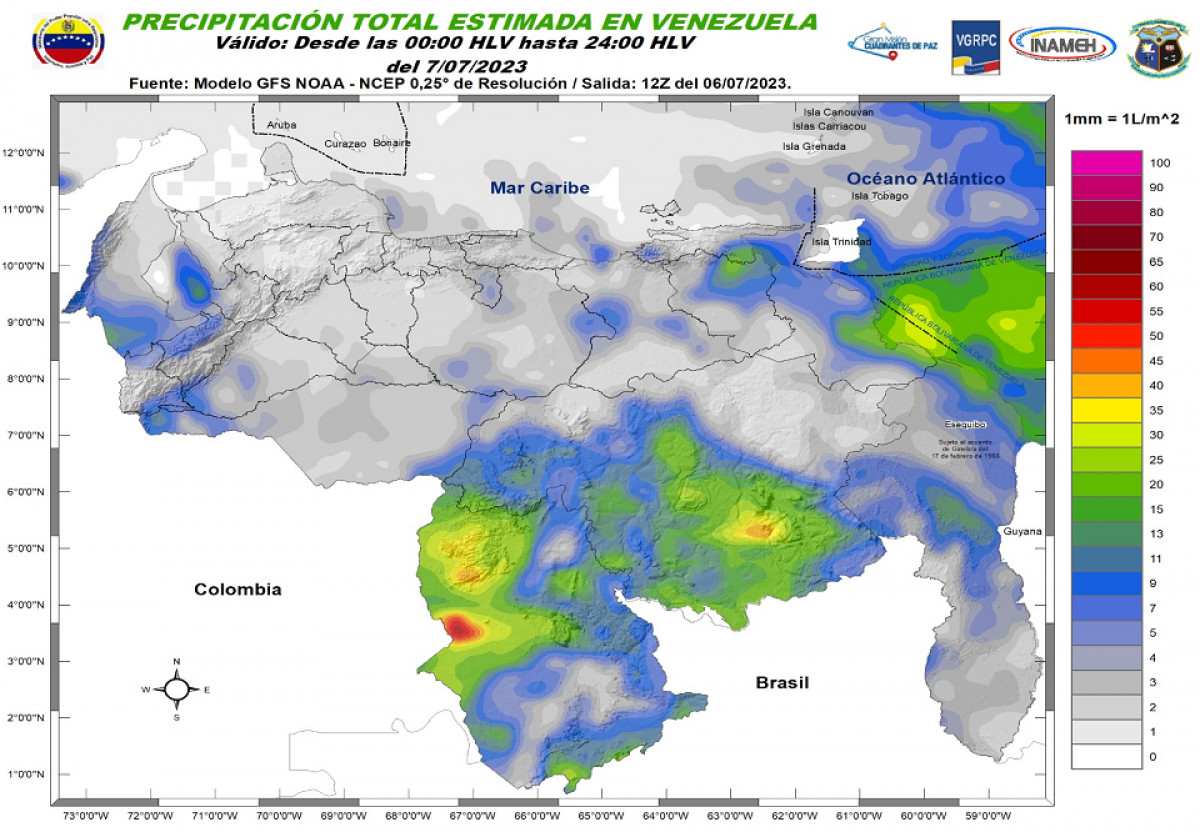 Cada día Inameh publica los pronósticos para las 24 horas del 7 de julio.
