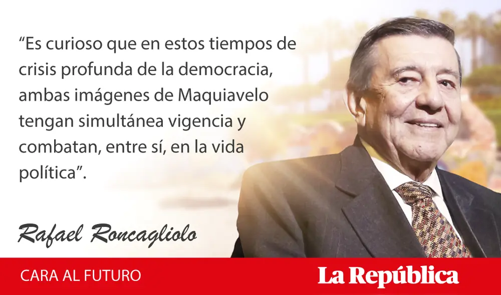 Es curioso que en estos tiempos de crisis profunda de la democracia, ambas imágenes de Maquiavelo tengan simultánea vigencia y combatan, entre sí, en la vida política: por un lado, quienes, en el Perú y en el mundo, hacen de la política arena de meras ambiciones mezquinas; y, por otro, quienes cultivan ideales colectivos. Solo si estos últimos prevalecen sobre los primeros, tendrá sentido hablar de democracia en el presente y en el futuro.