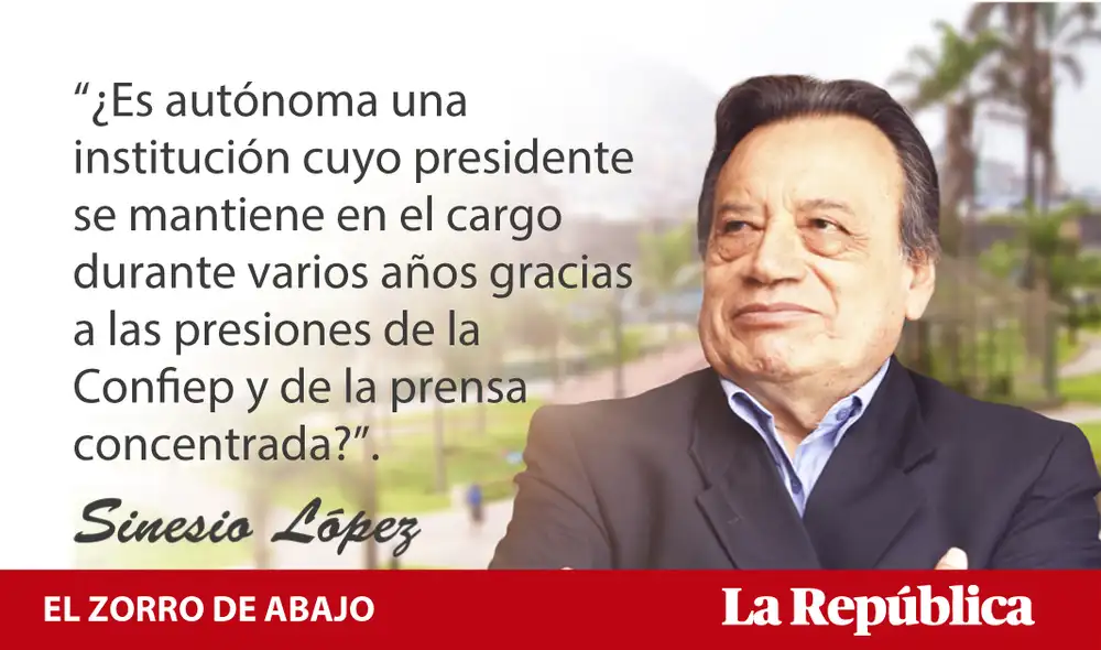 “¿Es autónoma una institución cuyo presidente se mantiene en el cargo durante varios años gracias a las presiones de la Confiep y de la prensa concentrada?”.