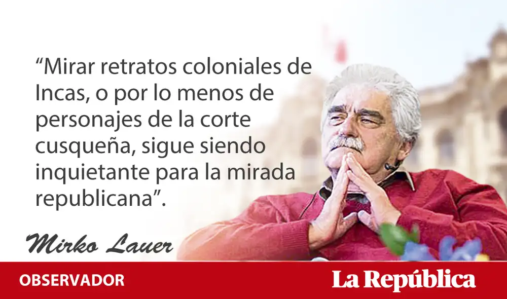 Si el tema es el rescate de lo imperial, los retratos de los incas mismos no son tan importantes como los de sus antepasados. Pues en esa sucesión está la base de una posible genealogía convincente de la realeza incaica hasta nuestros días, con todas las consecuencias del caso. Con la república empiezan a escasear los retratos imaginarios.