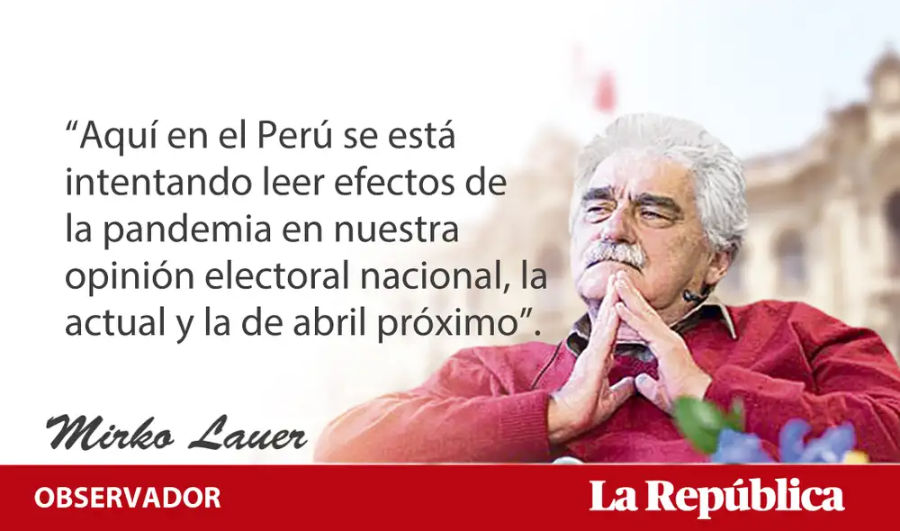 Aquí en el Perú se está intentando leer efectos de la pandemia en nuestra opinión electoral nacional, la actual y la de abril próximo. No hay resultados concretos de esta indagación, más allá de que el ataque a la vacuna se ha convertido en un arma arrojadiza de la polémica política. En el tentativo mes 14 estaremos ya en otro gobierno.