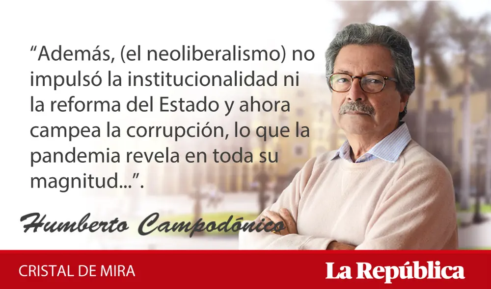 “Además, (el neoliberalismo) no impulsó la institucionalidad ni la reforma del Estado y ahora campea la corrupción, lo que la pandemia revela en toda su magnitud...”.