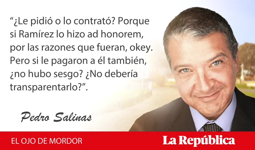 Y eso es lo que no está claro. ¿Le pidió o lo contrató? Porque si Ramírez lo hizo ad honorem, por las razones que fueran, okey. Pero si le pagaron a él también, ¿no hubo sesgo? ¿No debería transparentarlo? Pregunto nomás.