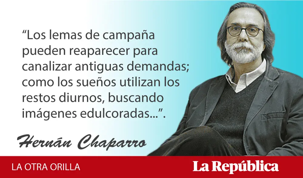 “Los lemas de campaña pueden reaparecer para canalizar antiguas demandas; como los sueños utilizan los restos diurnos, buscando imágenes edulcoradas...”.