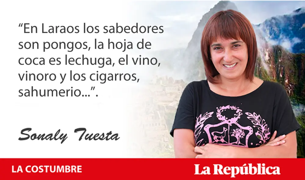 “En Laraos los sabedores son pongos, la hoja de coca es lechuga, el vino, vinoro y los cigarros, sahumerio...”.