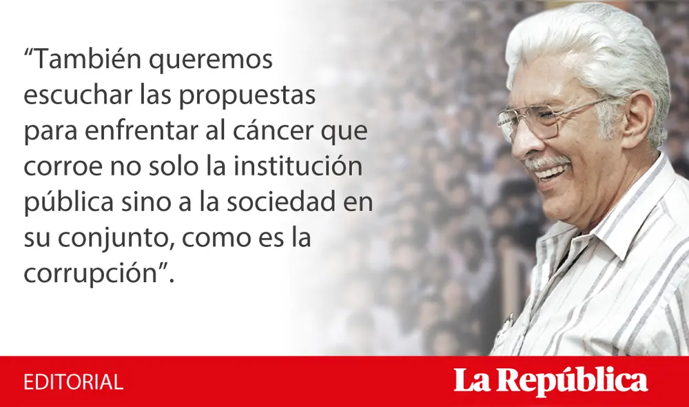 También escucharemos las propuestas para enfrentar al cáncer que corroe no solo la institución pública sino a la sociedad en su conjunto, como es la corrupción. En las encuestas recientes es considerado el principal tema de agenda pública; y más grave que la corrupción resulta siendo el clima de impunidad, es decir, la convicción entre los ciudadanos de que existen personas que están por encima de la ley y que, pese a la demostración de su culpabilidad y las pruebas que así lo certifican, no reciben sanciones.