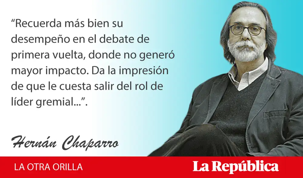 “Recuerda más bien su desempeño en el debate de primera vuelta, donde no generó mayor impacto. Da la impresión de que le cuesta salir del rol de líder gremial...”.