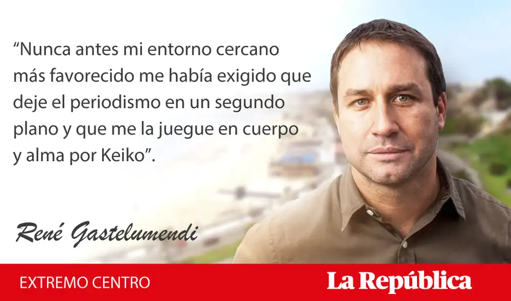 “Nunca antes mi entorno cercano más favorecido me había exigido que deje el periodismo en un segundo plano y que me la juegue en cuerpo y alma por Keiko”.