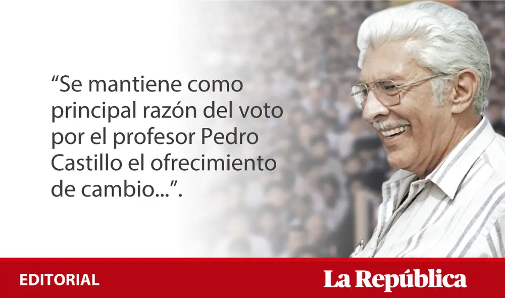 ¿Qué apreciamos en la evaluación sobre las razones que motivaron a los peruanos a volcar sus expectativas en relación con uno u otro candidato? Se mantiene como principal razón del voto por el profesor Castillo el ofrecimiento de cambio. Recién en segundo lugar se apunta al antivoto que despierta Keiko Fujimori, con 25%. Otro 14% señala haber votado porque se va a preocupar por los que menos tienen. La confianza en el candidato del lápiz es la razón principal para el 10% de los peruanos.