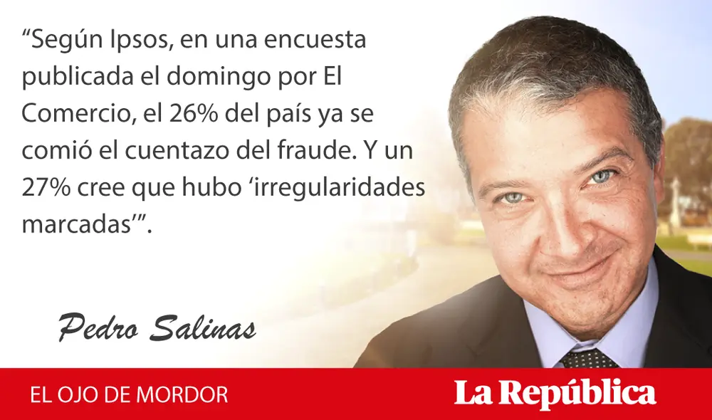 “Según IPSOS, en una encuesta publicada el domingo por El Comercio, el 26% del país ya se comió el cuentazo del fraude. Y un 27% cree que hubo ‘irregularidades marcadas’”.