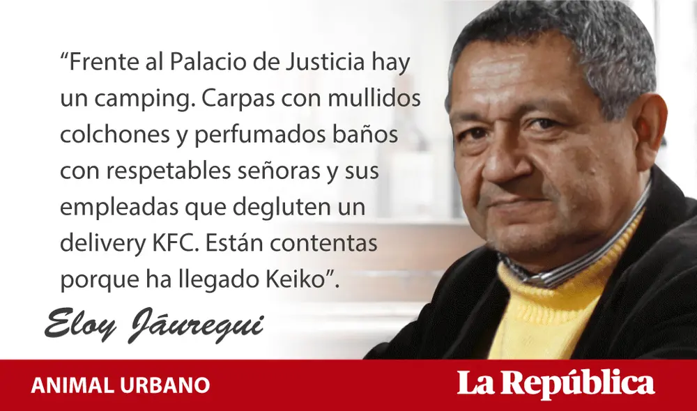 “Frente al Palacio de Justicia hay un camping. Carpas con mullidos colchones y perfumados baños con respetables señoras y sus empleadas que degluten un delivery KFC. Están contentas porque ha llegado Keiko”.