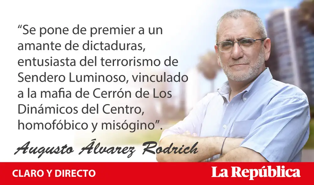 Asimismo, la composición del gabinete es deplorable. Se pone de premier a un amante de dictaduras, entusiasta del terrorismo de Sendero Luminoso, vinculado a la mafia de Cerrón de los dinámicos del centro, homofóbico y misógino, nada de lo cual perturba a Verónika Mendoza y sus chicas para treparse a esta combi asesina de los derechos de las personas.