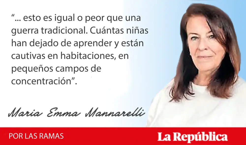 “... esto es igual o peor que una guerra tradicional. Cuántas niñas han dejado de aprender y están cautivas en habitaciones, en pequeños campos de concentración”.