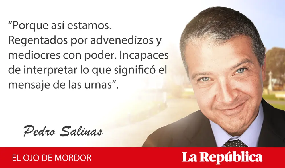 Porque así estamos. Regentados por advenedizos y mediocres con poder. Incapaces de interpretar lo que significó el mensaje de las urnas, pues escuchan los reclamos ciudadanos con el mismo interés de quien observa a los que le acompañan en un ascensor.