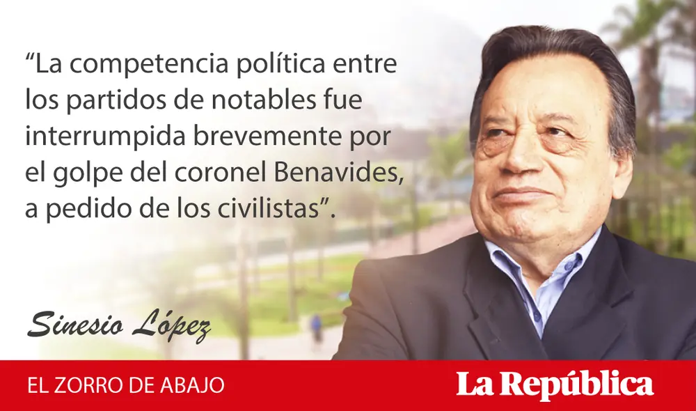 “La competencia política entre los partidos de notables fue interrumpida brevemente por el golpe del coronel Benavides, a pedido de los civilistas”.