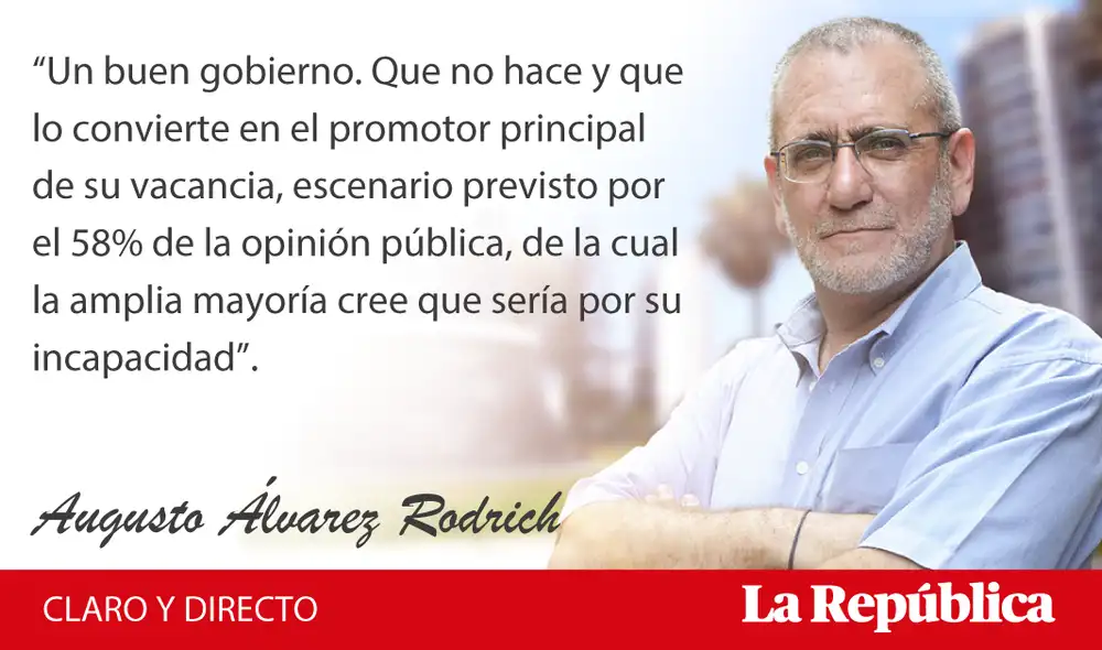 2. Un buen gobierno. Que no hace y que lo convierte en el promotor principal de su vacancia, escenario previsto por el 58% de la opinión pública, de la cual la amplia mayoría cree que sería por su incapacidad.