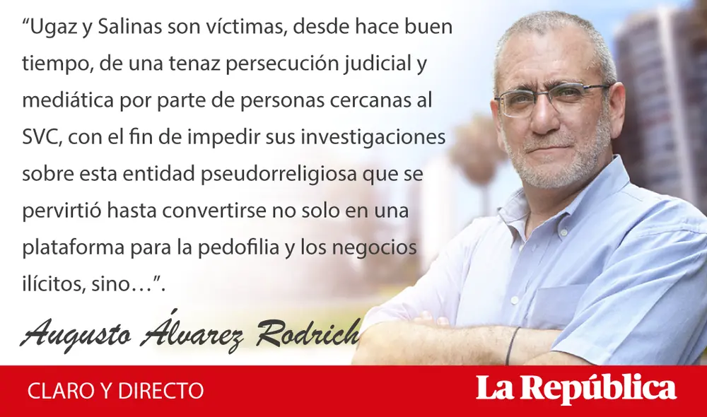 Eso refuerza la sospecha del motivo detrás del operativo. Ugaz y Salinas son víctimas, desde hace buen tiempo, de una tenaz persecución judicial y mediática por parte de personas cercanas al SVC, con el fin de impedir sus investigaciones sobre esta entidad pseudorreligiosa que se pervirtió hasta convertirse no solo en una plataforma para la pedofilia y los negocios ilícitos, sino en una verdadera organización criminal.