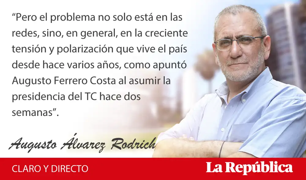 Pero el problema no solo está en las redes, sino, en general, en la creciente tensión y polarización que vive el país desde hace varios años, como apuntó Augusto Ferrero Costa al asumir la presidencia del TC hace dos semanas.