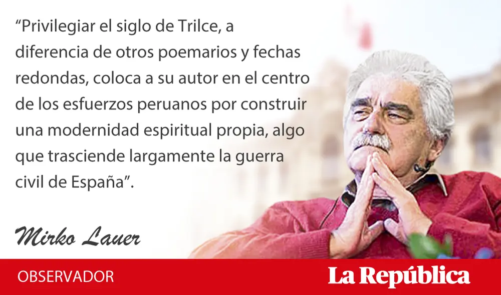 “Privilegiar el siglo de Trilce, a diferencia de otros poemarios y fechas redondas, coloca a su autor en el centro de los esfuerzos peruanos por construir una modernidad espiritual propia, algo que trasciende largamente la guerra civil de España”.