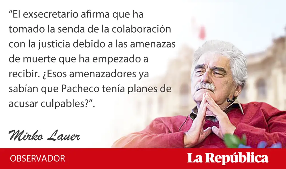 Pacheco no es cualquier potencial colaborador con la justicia. La breve trayectoria junto a Pedro Castillo puede haber puesto en sus manos secretos decisivos del mandatario y de su entorno inmediato. Su silencio es, pues, valioso para varios miembros de la cúpula, y justifica bastante más que una llamada anónima de amenaza.