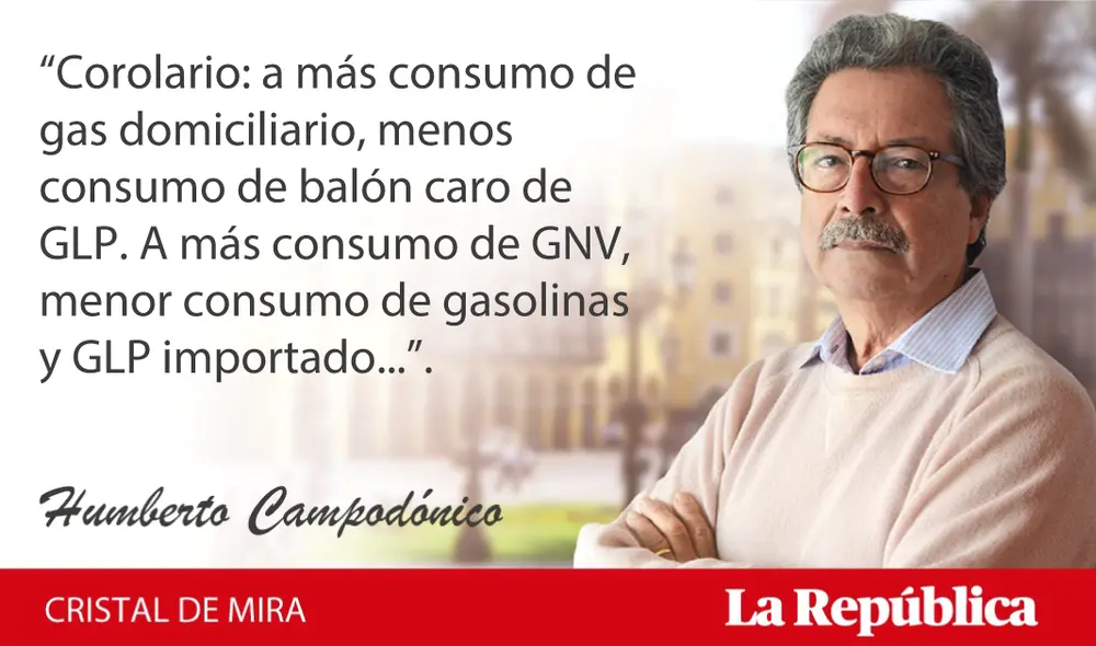 “Corolario: a más consumo de gas domiciliario, menos consumo de balón caro de GLP. A más consumo de GNV, menor consumo de gasolinas y GLP importado...”.