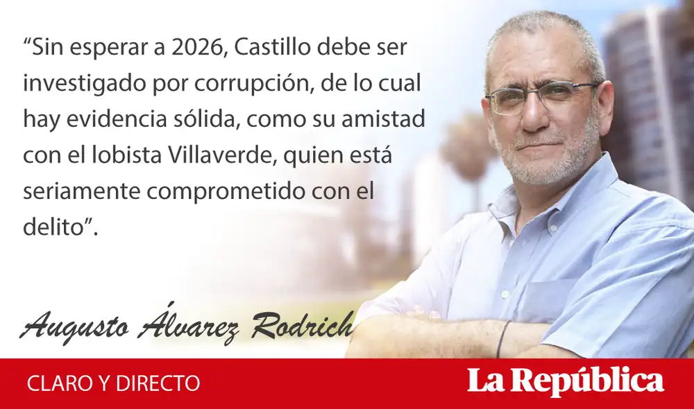 Sin esperar a 2026, Castillo debe ser investigado por corrupción, de lo cual hay evidencia sólida, como su amistad con el lobista Villaverde, quien está seriamente comprometido con el delito.