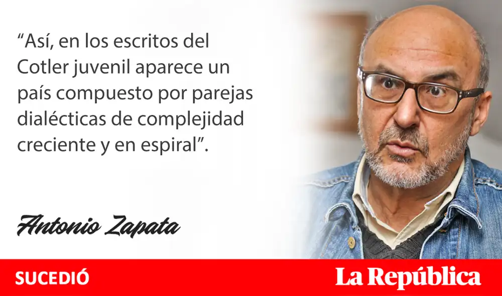 “Así, en los escritos del Cotler juvenil aparece un país compuesto por parejas dialécticas de complejidad creciente y en espiral”.