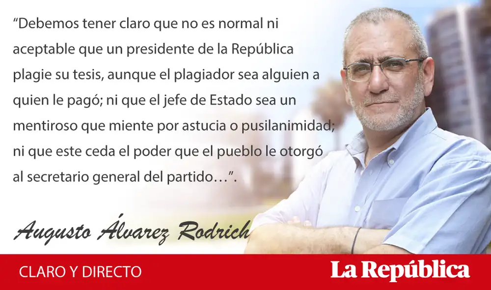 “Debemos tener claro que no es normal ni aceptable que un presidente de la república plagie su tesis, aunque el plagiador sea alguien a quien le pagó; ni que el jefe de Estado sea un mentiroso que miente por astucia o pusilanimidad; ni que este ceda el poder que el pueblo le otorgó al secretario general del partido”.